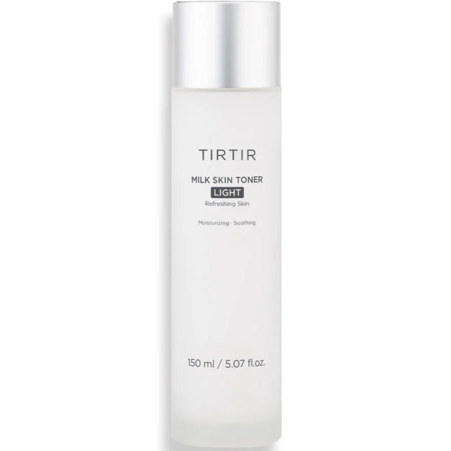 Milk Skin Toner Light by TIRTIR. Hydration and Balance for a Radiant Complexion Achieve refreshed and hydrated skin with TIRTIR Milk Skin Toner Light, a lightweight toner designed to balance, soothe, and revitalize acne-prone, sensitive, and oily skin. Infused with 4% Niacinamide, Panthenol, Allantoin, and Rice Bran Extract, this vegan rice toner provides instant hydration while refining pores and maintaining a radiant complexion. Key Features and Benefits Lightweight and Non-Sticky FormulaAbsorbs quickly into the skin, delivering deep hydration without leaving a sticky residue. Pore-Tightening and Skin-BalancingEnriched with 4% Niacinamide and Panthenol, it minimizes the appearance of pores and balances excess oil for smoother, clearer skin. Infused with Patented MultiEx BSAM PlusA vegan blend of 7 plant-based ingredients that soothes irritation, revitalizes skin, and promotes a healthy glow. Brightens and Evens Skin ToneRice Bran Extract and Ceramide work together to refine uneven skin tone while preventing moisture loss for a naturally luminous look. Gentle and Suitable for Acne-Prone SkinThe formula is ideal for daily use on sensitive or oily skin, providing hydration without clogging pores or causing irritation. Why Choose the TIRTIR Milk Skin Toner Light? The TIRTIR Milk Skin Toner Light stands out as a skincare essential for those looking to simplify and elevate their daily routine. Its innovative formula delivers the perfect combination of hydration, pore care, and skin-soothing benefits, making it a go-to toner for anyone with sensitive or acne-prone skin. This lightweight toner absorbs effortlessly and leaves your skin feeling refreshed, balanced, and radiant—all without the stickiness of traditional toners. FAQ: Q: How do I use the TIRTIR Milk Skin Toner Light?A: After cleansing, pour a small amount onto a cotton pad or your palms and gently pat it into your skin. Follow with your favorite serum or moisturizer.Q: Is it suitable for oily and acne-prone skin?A: Yes! This toner is specifically designed to balance oil production, tighten pores, and hydrate without clogging pores, making it ideal for oily and acne-prone skin.Q: Can I use this toner every day?A: Absolutely! The gentle formula is perfect for daily use in both morning and evening skincare routines.Q:What is MultiEx BSAM Plus, and how does it benefit my skin?A: MultiEx BSAM Plus is a patented blend of 7 plant-based ingredients that soothes irritation, revitalizes tired skin, and promotes a radiant complexion.