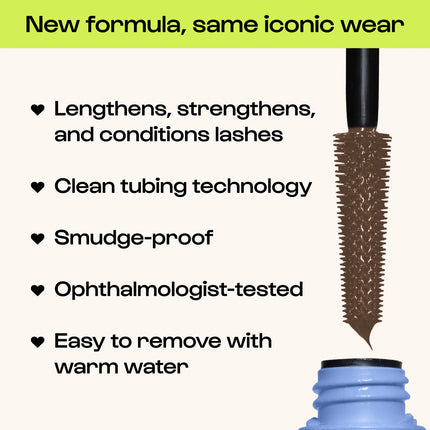 Boosted with lash serum ingredients for lashes that truly go the distance. Peptides, Biotin (B7), Pea Sprout Extract, and Shea Butter help support lash repair, natural growth, and strength against breakage for glossy, healthy, fuller-looking lashes.