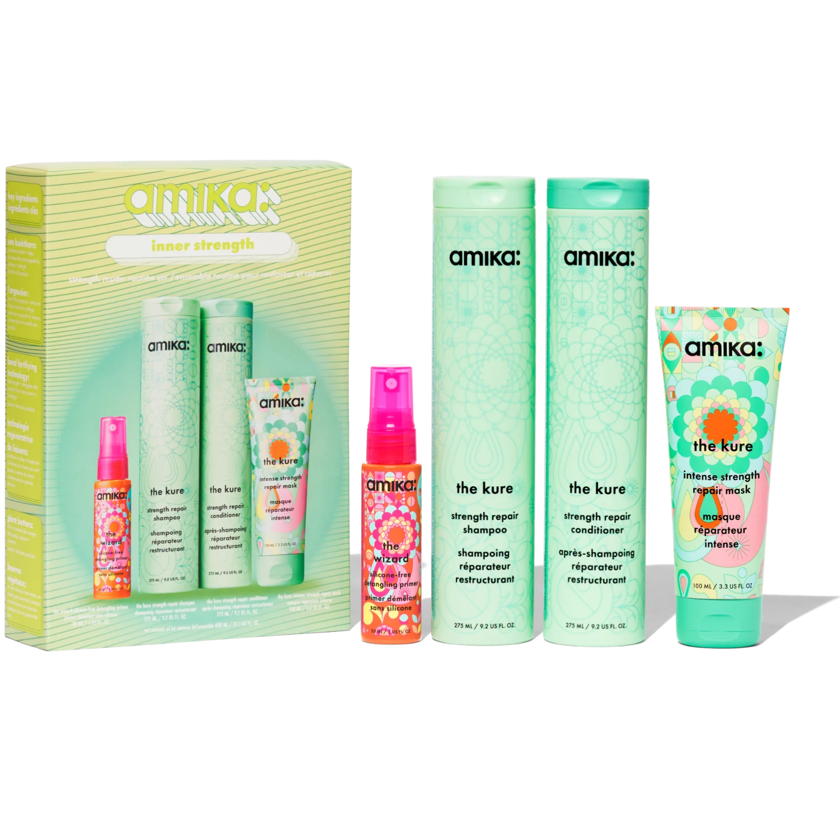 tap into your strongest, most protected strands with this bond-fortifying set featuring full sizes of the kure strength repair shampoo + conditioner, plus travel sizes of the kure intense strength repair mask + the wizard silicone-free detangling primer.