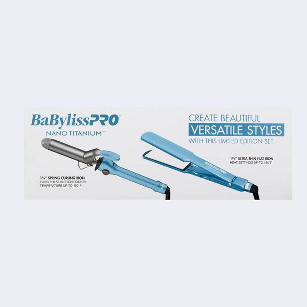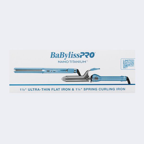 Get 2 in 1! The Nano Titanium 1 1/2" Ultra-Thin Flat Iron & 1 1/4" Spring Curling Iron Gift Set by BaBylissPRO combines two lightweight, durable styling tools.