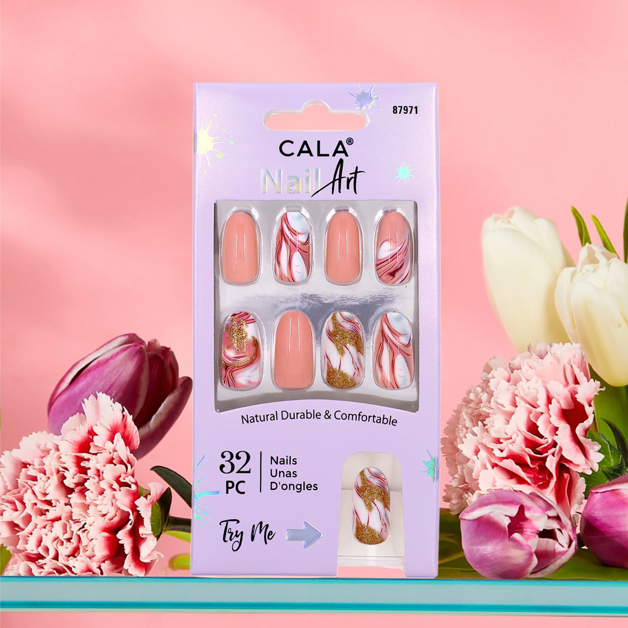 Turn heads with a chic, salon-quality manicure in minutes. These CALA Nail Art Press-On Nails feature a dreamy marbled swirl design with soft peach tones, rich red accents, and touches of gold shimmer – perfect for elevating any look from everyday wear to special occasions.
