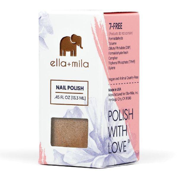 • Step 4. Shine, seal, and protect with one coat of ella+mila's Top Coat, pulling it over the tips of the nails.