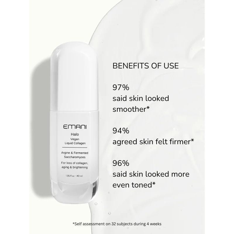 Highly effective first-ever vegan certified collagen, derived from Pichia Pastoris yeast, the patented fermentation technology produces a non-allergenic, high-performance vegan collagen. Halo Liquid Collagen has a low molecular weight to accelerate absorption to visibly minimize the appearance of fine lines and wrinkles. Halo Vegan Collagen Serum nourishes new skin post-treatment, aiding renewal and strengthening the skin's microbiome.