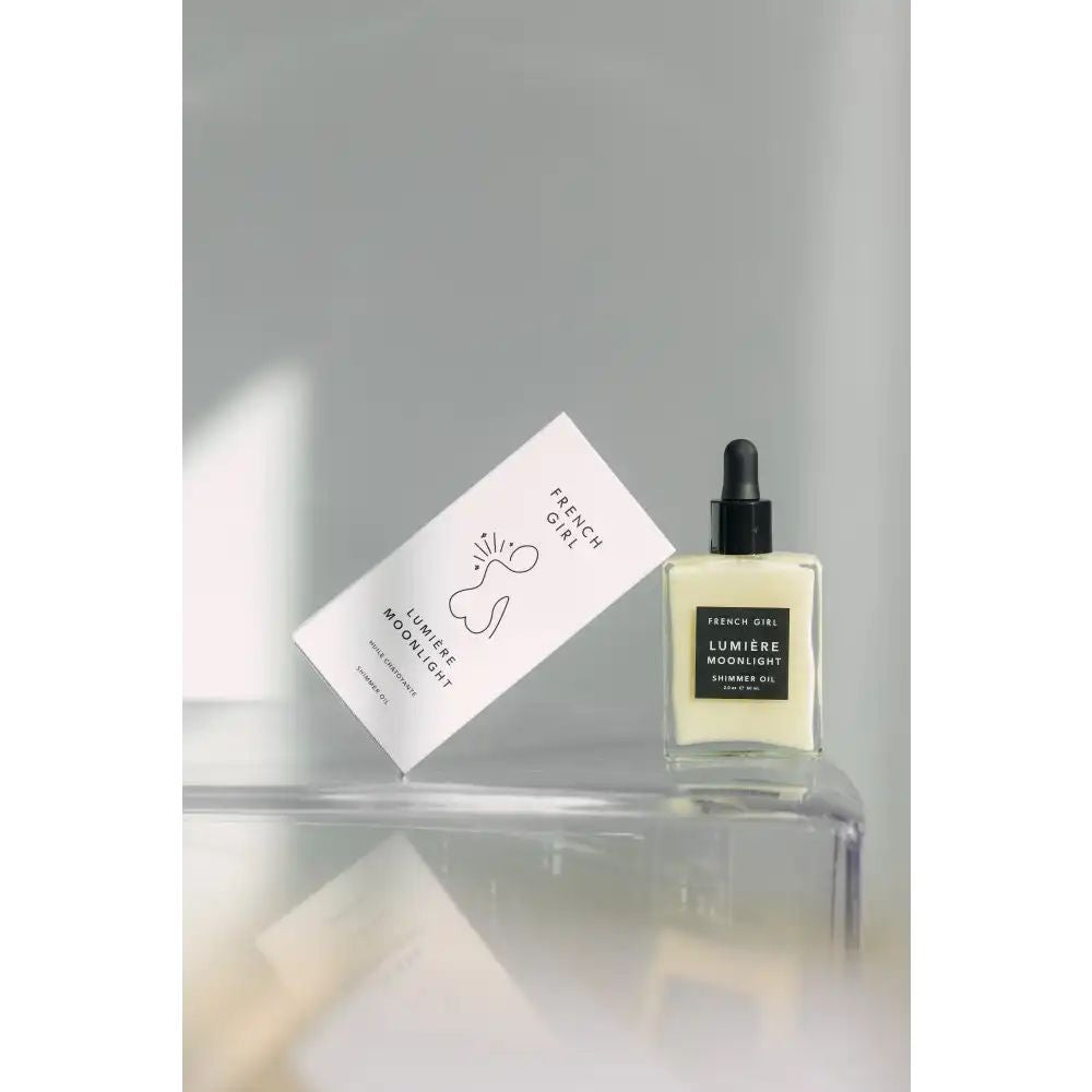THE SUPERSTARS: Argan Oil sourced from North Africa contains rich, fatty acids that protect skin from free radicals. Shea Butter and a blend of skin-similar oils provide deep hydration and absorb into the skin leaving a beautiful dry-touch feeling. USA-sourced iron oxides and micas from trusted suppliers provide luminosity and glow without synthetic color. Pamper your skin with our luxuriously rich and hydrating Luminous Shimmer Oil - Moonlight. Infused with Argan Oil from North Africa, this exquisite formula is packed with fatty acids that protect and nourish your skin. Combined with Shea Butter and a blend of skin-similar oils, it provides deep hydration and absorbs quickly, leaving a beautiful dry-touch feeling. French Girl's carefully sourced USA iron oxides and micas add a touch of luminosity and glow without using any synthetic color, giving your skin a natural and radiant appearance. Experience the elegance and exclusivity of our premium formula, specially crafted for those who appreciate the finer things in life.