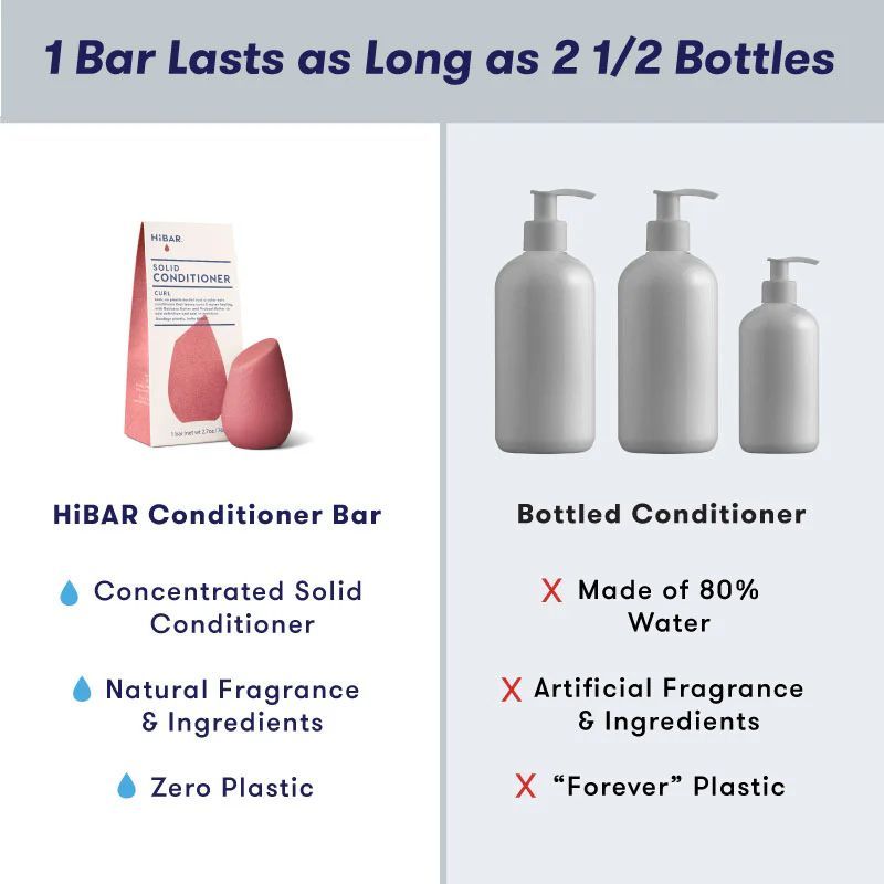 Like all HiBAR Conditioner Bars, the unique shape is designed to fit comfortably in your hand for easy use. And don’t be fooled by the compact size—each conditioner bar lasts as long as 3 big bottles of liquid conditioner. Whether you’re looking for the best solid conditioner or eco-friendly curly hair products, this moisturizing curly conditioner bar is a sustainable option.