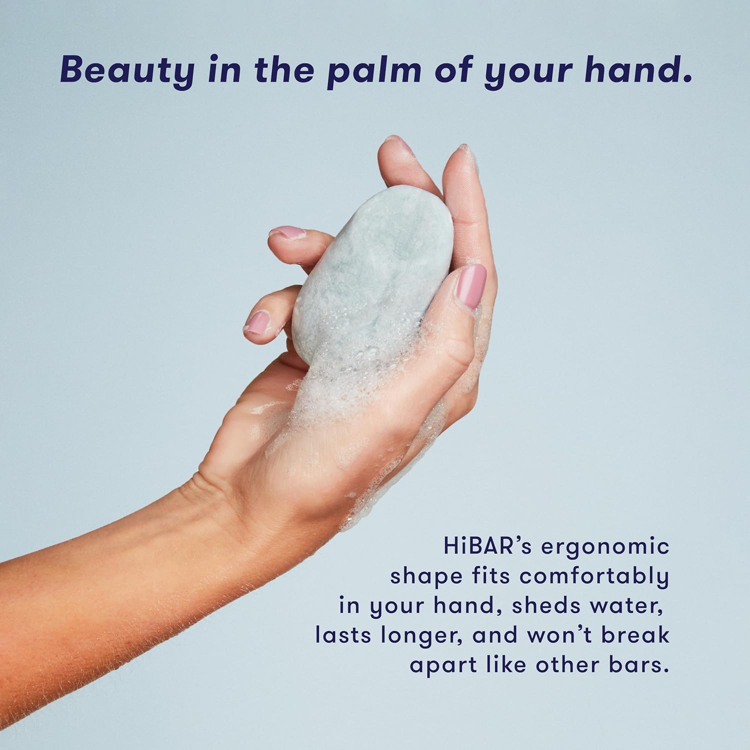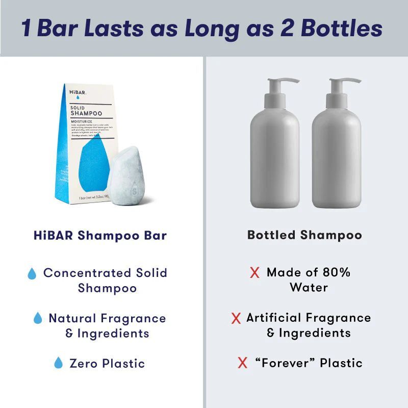 The unique shape of HiBAR Shampoo Bars is designed to fit comfortably in your hand for easy use. And don’t be fooled by the compact size—each shampoo bar lasts as long as 2 big bottles of liquid shampoo.