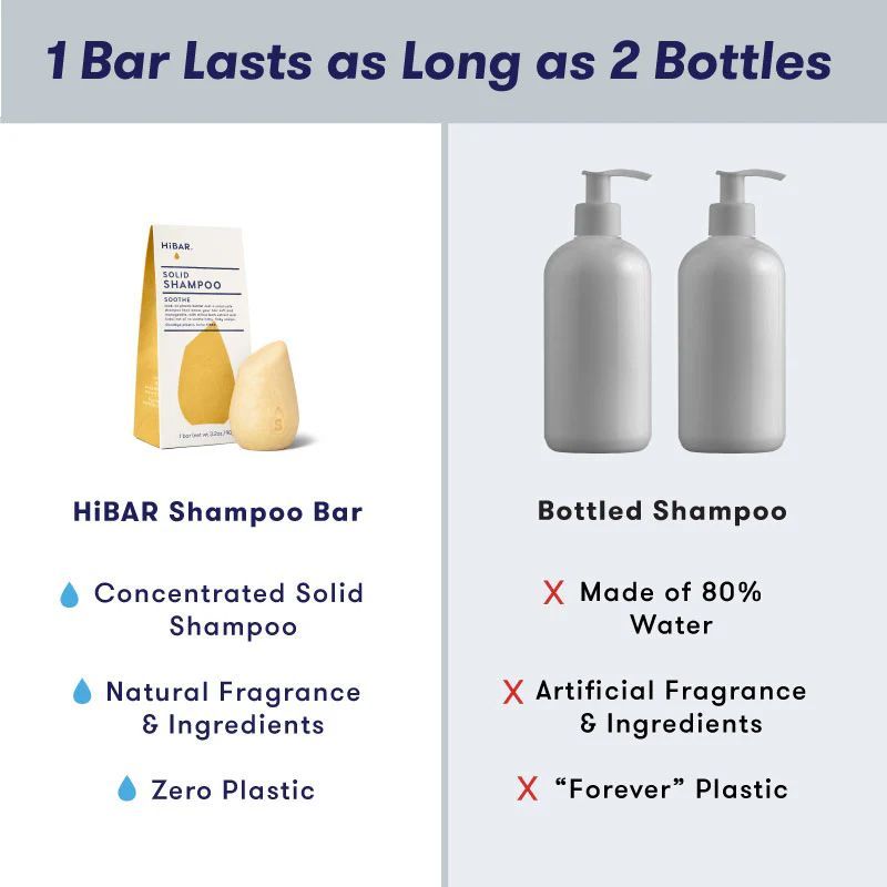 The unique shape of HiBAR Shampoo Bars is designed to fit comfortably in your hand for easy use. And don’t be fooled by the compact size—each shampoo bar lasts as long as 2 big plastic bottles of liquid shampoo.