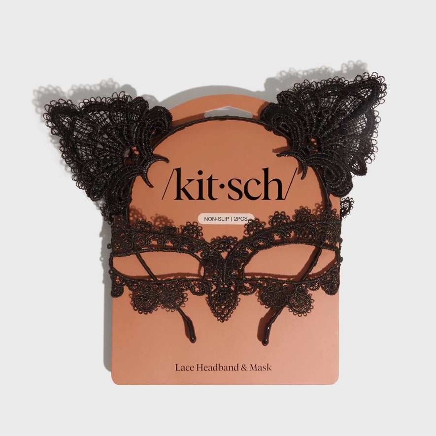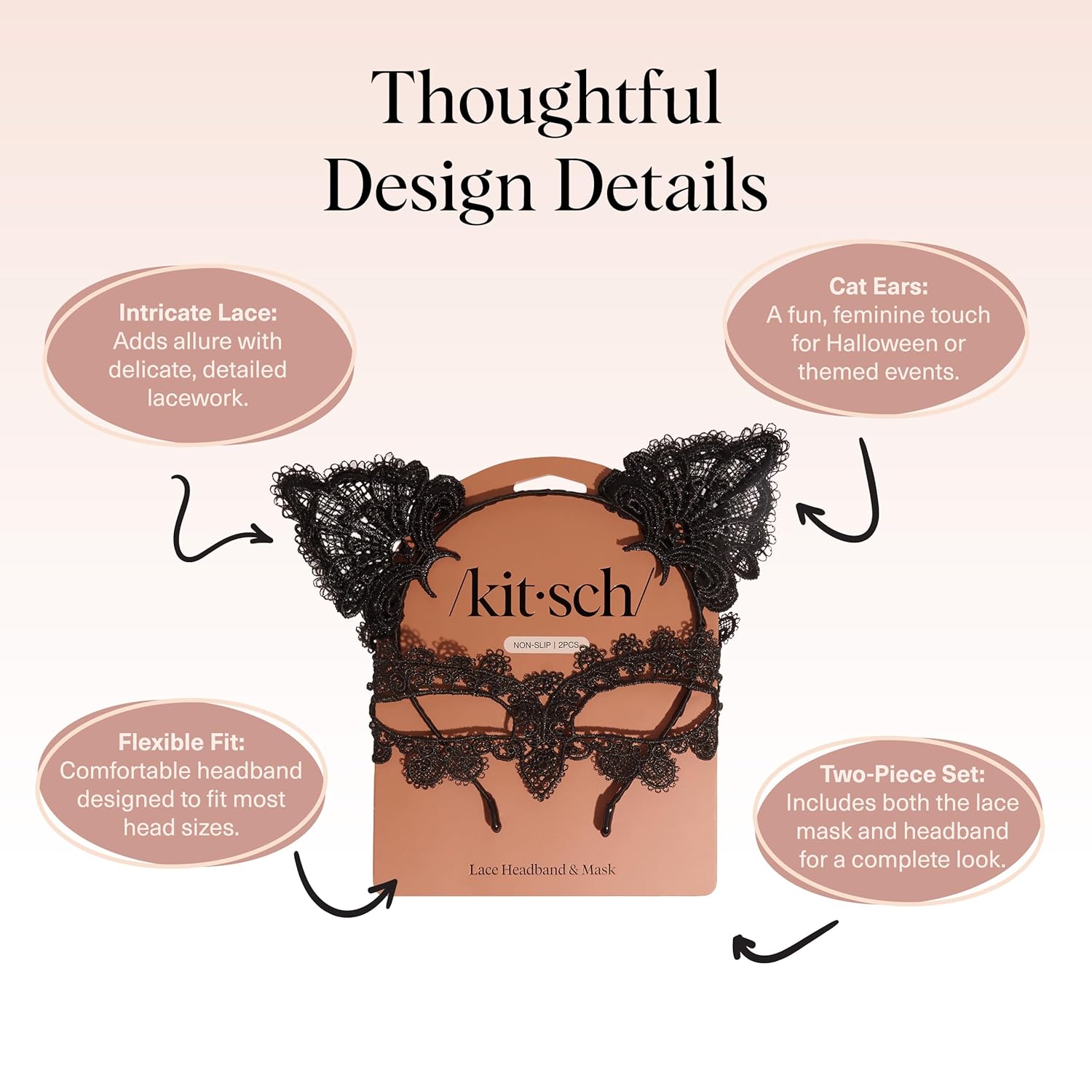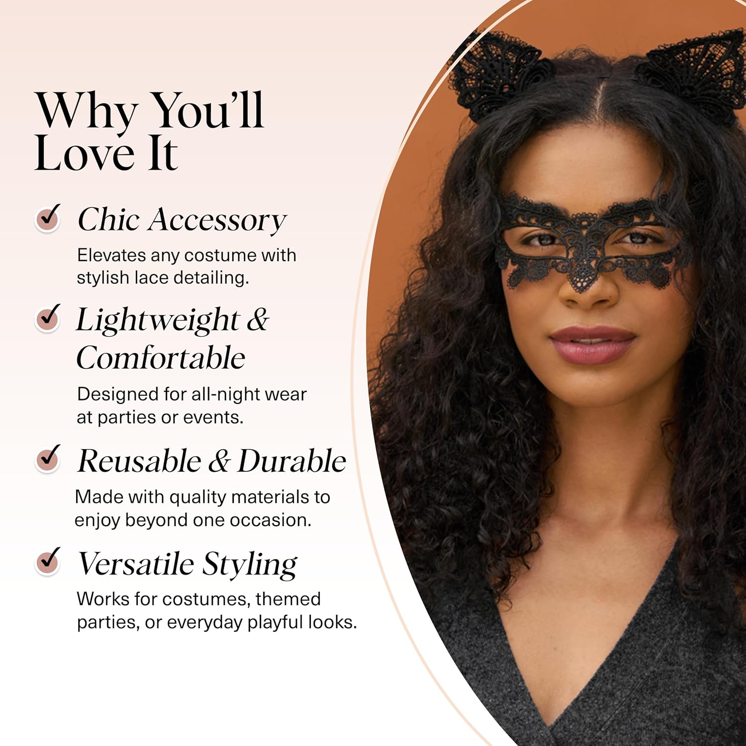Black Cat Lace Headband & Mask by KITSCH. Intricate lace design for a bold, mysterious vibe Ideal for Halloween parties, themed events,... Read more