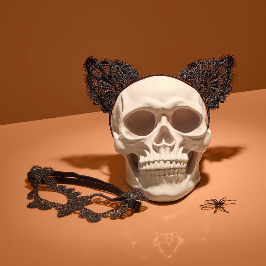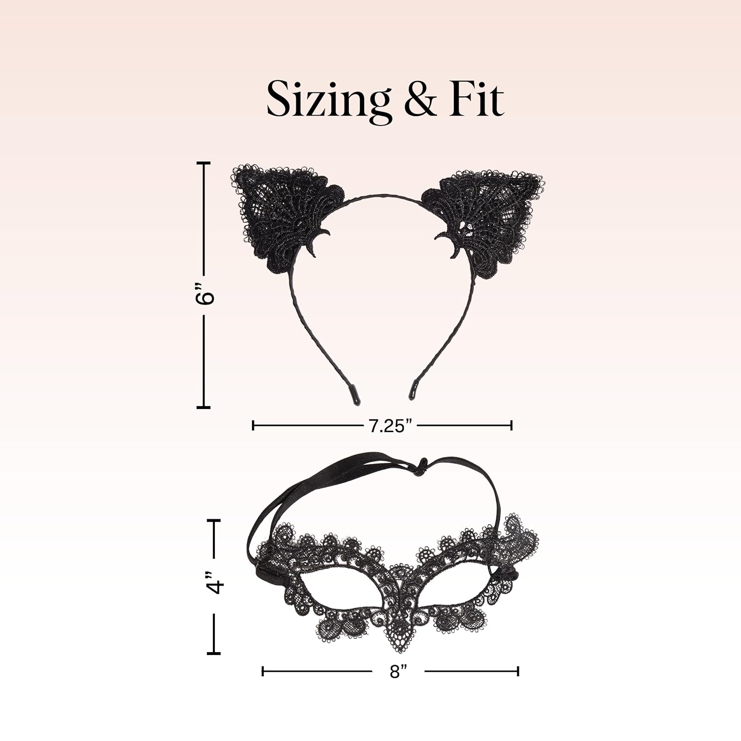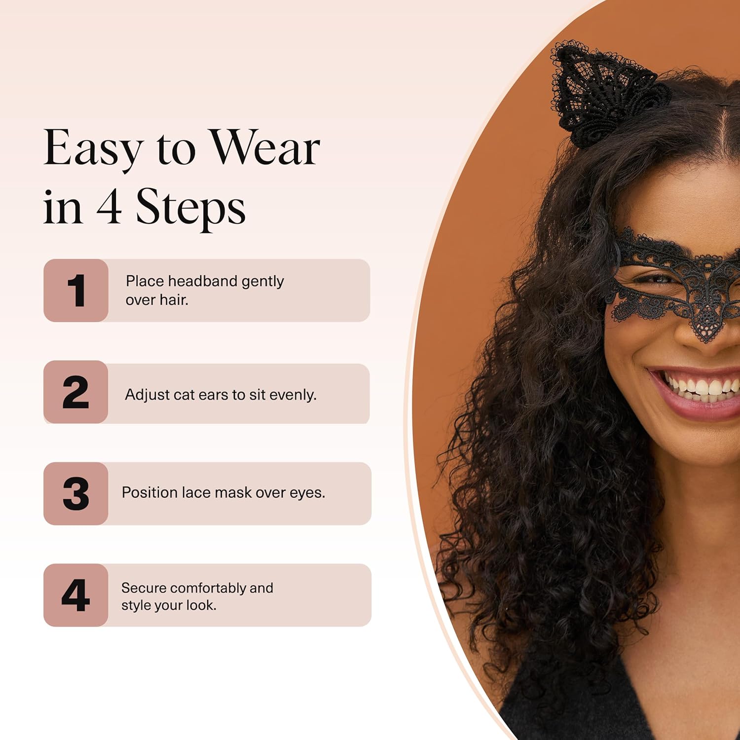Black Cat Lace Headband & Mask by KITSCH. Intricate lace design for a bold, mysterious vibe Ideal for Halloween parties, themed events,... Read more
