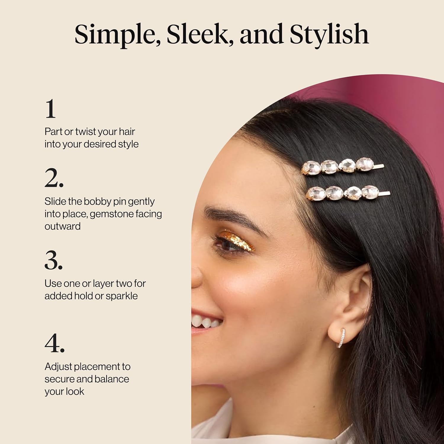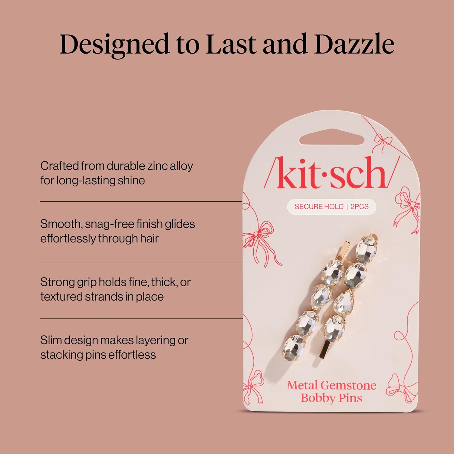 White Gemstone Bobby Pins by KITSCH. Securely pins bangs, layers, and flyaways in place without slipping or snagging Ideal for all hair... Read more
