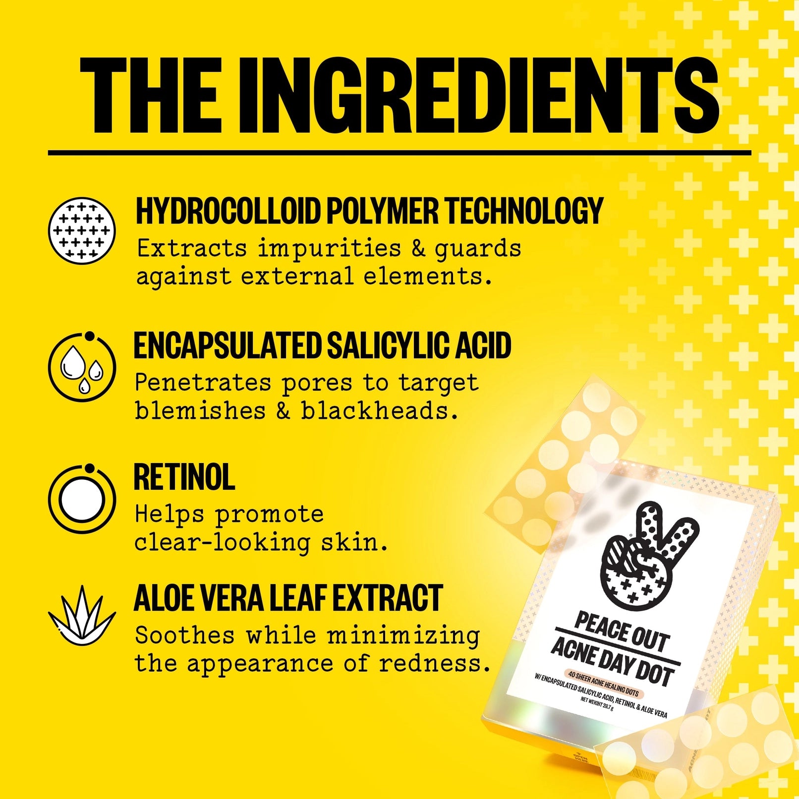 For even peskier breakouts, use with Peace Out Acne Dots at night (sold separately).