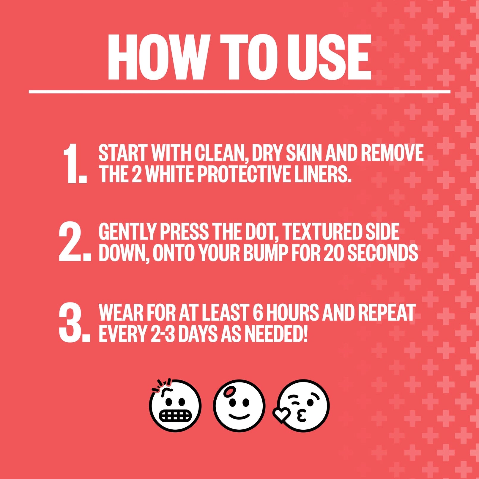 Wear for at least 6 hours and repeat every 2-3 days as needed!