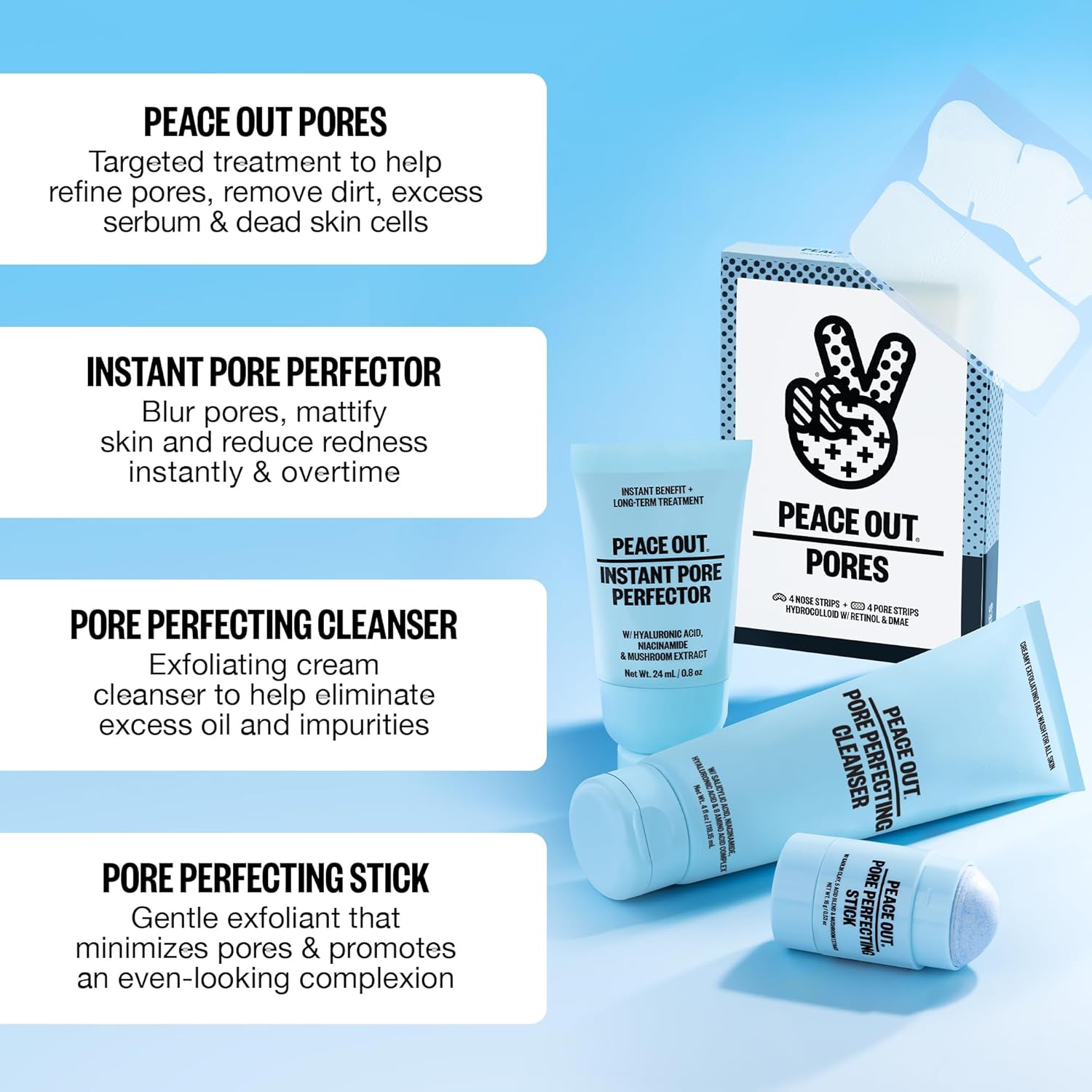 Pore Minimizing Strips by Peace Out. 4 Customizable Pore Strips + 4 Nose Strips A set of oil-absorbing strips formulated with NEW,...