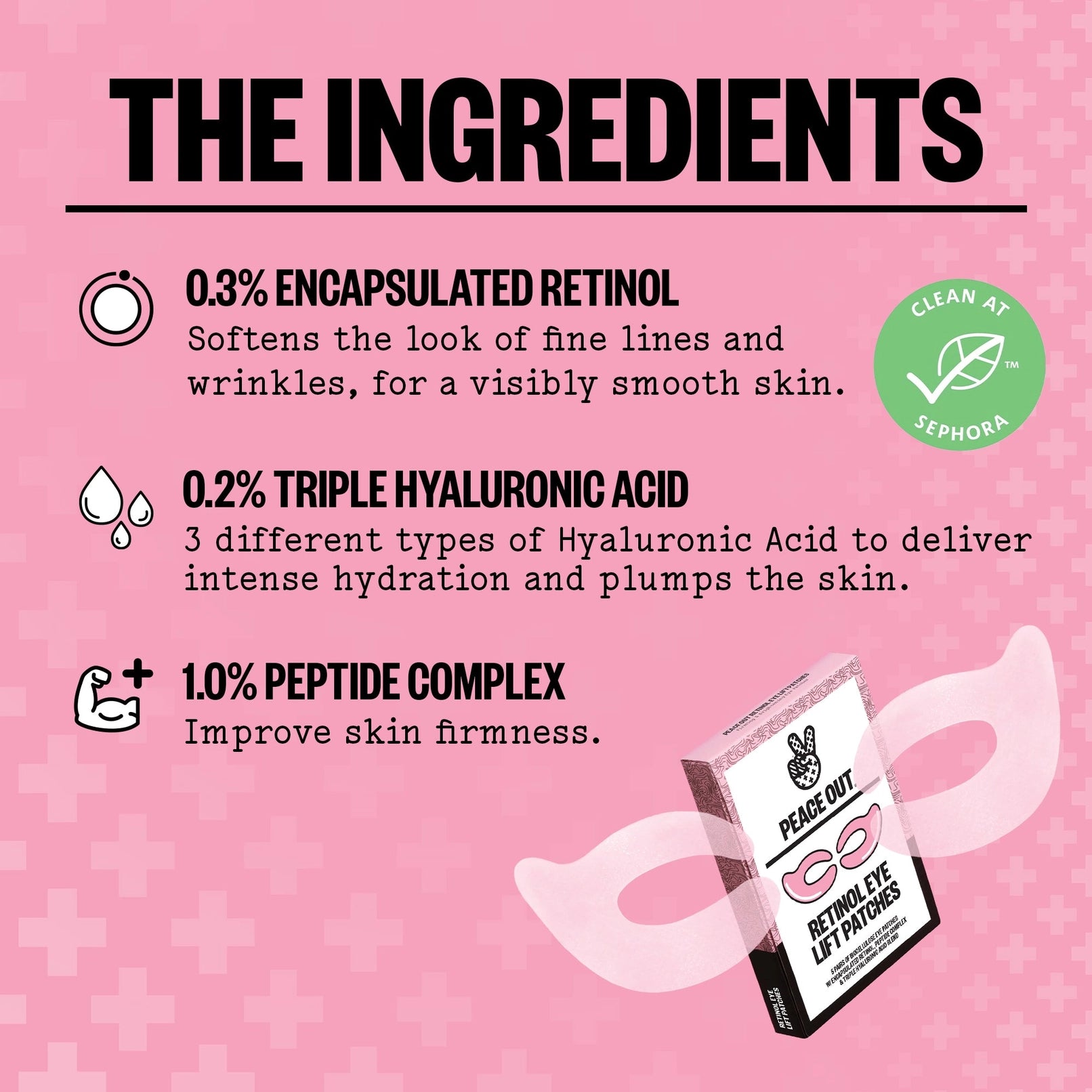 Retinol Eye Lift Patches by Peace Out Skincare. 5 Pairs of Biocellulose Eye Patches A 360° targeted treatment to lift,...