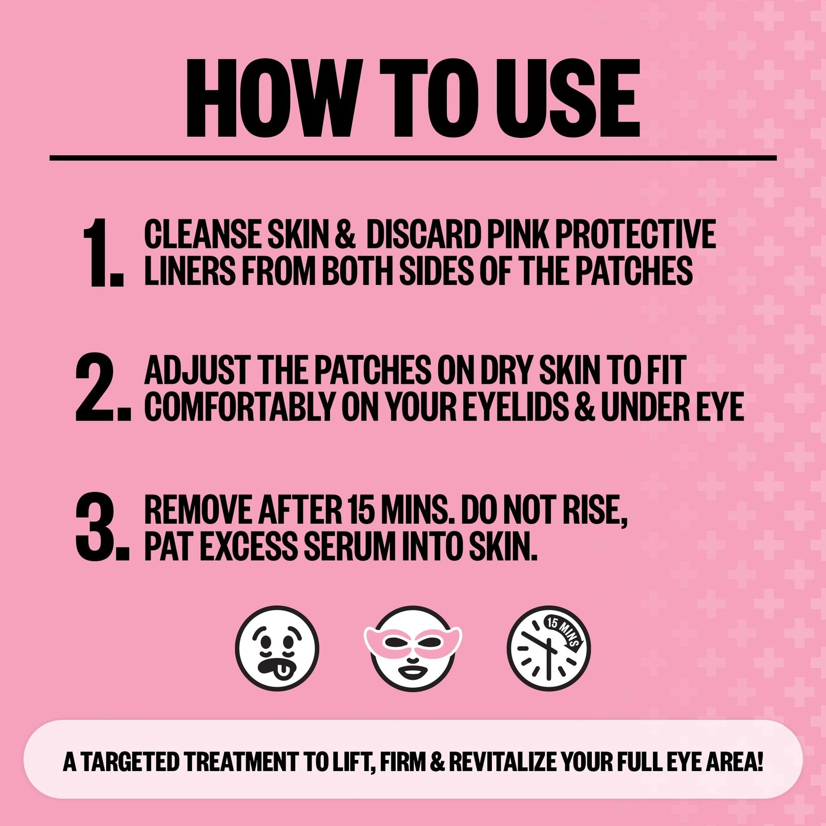 2. Place the patches onto dry skin and adjust to fit comfortably under the eyes and on the eyelids.