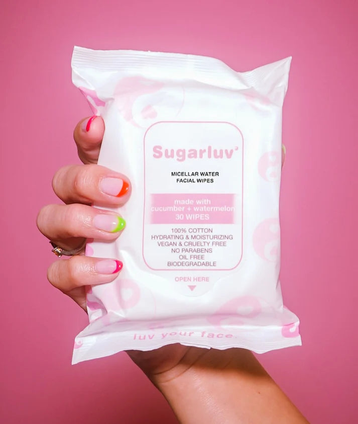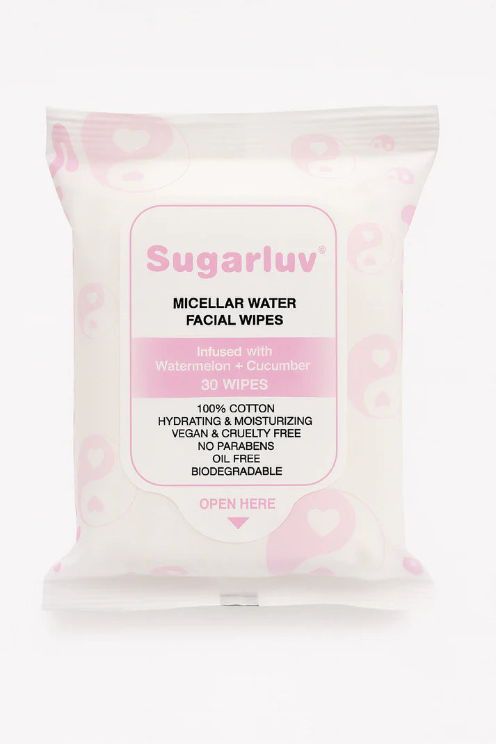 Fresh Face, No Fuss Sugarluv’s 100% Cotton Biodegradable Facial Cleansing Wipes are your new skincare BFF. Infused with micellar water, watermelon, and cucumber extracts, these wipes do it all—remove makeup, hydrate thirsty skin, and leave your face feeling cool, clean, and glowy.
