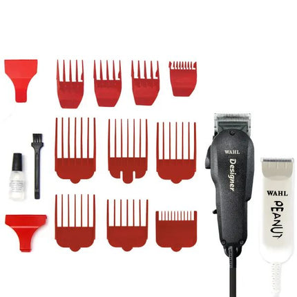 Two of Wahl's top selling products have come together to make an All-Star Team. The Designer™ Clipper and Peanut® trimmer are the perfect duo in the barbershop or salon. The Designer has constant corded power to get you through a busy day in the salon and comes equipped with an adjustable taper lever for easy blending and fading. The Peanut has the constant power of a rotary motor and fits safe and secure in the palm of your hand. It also is an excellent beard trimmer with four attachment comb options for a variety of different lengths. Pick up your new favorite duo, aka the Wahl All Star Combo ®, today!