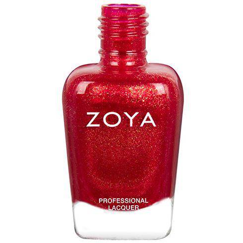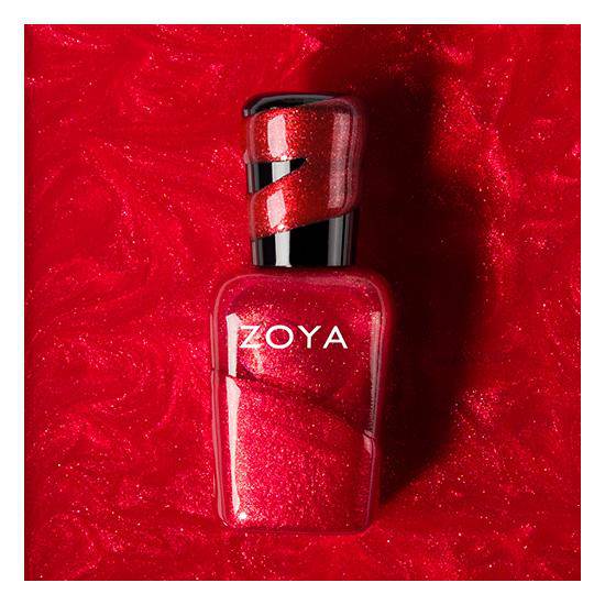 Zoya in Sophia best be described as an intense crimson red with a golden glass-fleck blended in. Perfect for the holiday season and reminiscent of a satin red ribbon.