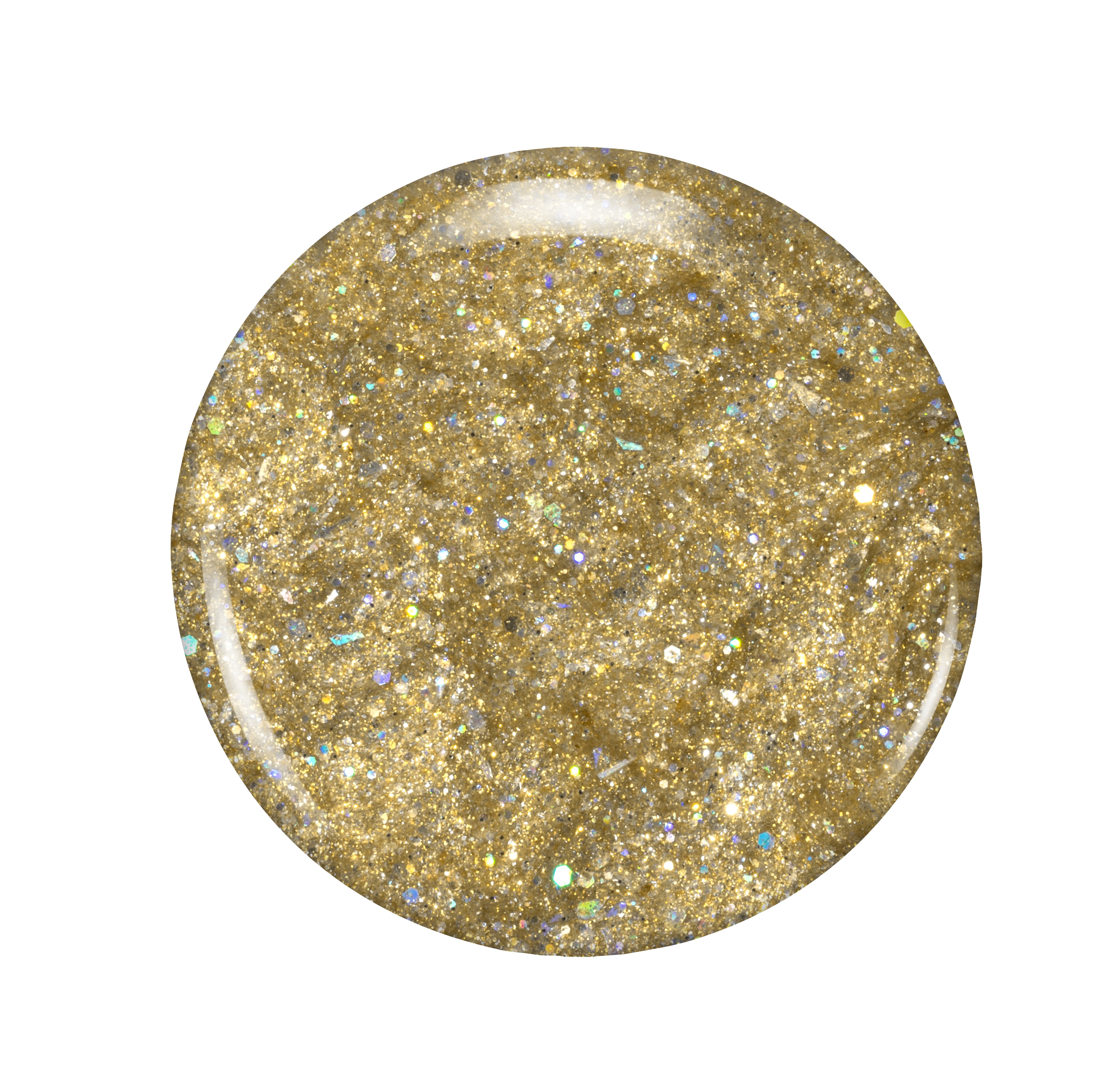 A brilliant gold metallic polish enriched with a mesmerizing blend of iridescent hex shimmer, irregular flakes, gold and iridescent micro shimmer, and fine white pearl. A well balanced gold that compliments all skin tones. Zwide brush included inside.